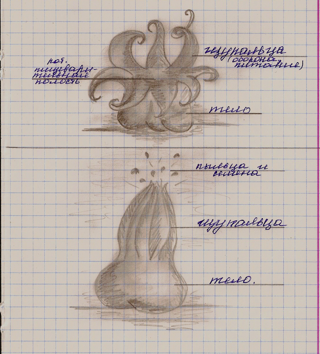 | И так...сегодня на берегу реки, во сне, увидела стоящую машину......двери были закрыты, но стекла на передних местах то ли спущенны, то ли разбиты....заглянув в машину, ключей не обнаружила.....но зато обнаружила 2 штуки.... Добавлено (18.02.2013, 17:21) --------------------------------------------- на верхнем рисунке показана именно она....такой как сидела....она примерно сантиметров 60 в ширину, и столько же в высоту.....не считая щупалец...... если в нее что то кинуть, то она выглядит как на рисунке снизу..... сначала съеживается, потом собирает все щупальца, выстреливая семенами и пыльцой.......семенами она размножается....а пыльцой заражает каким то вирусом.....вирус приживается в человеке, и буквально съедает его.......в итоге получается исходная штука....то есть съедая человека, появляется новое существо..... Добавлено (18.02.2013, 17:22) --------------------------------------------- Окрас темно- синий....почти черный.....взрослая особь абсолютно черная......